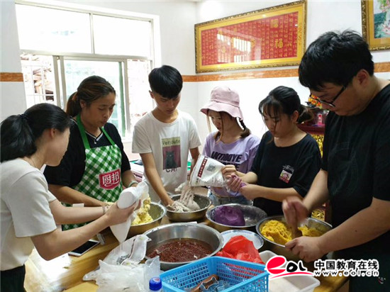当天上午,仕洋村叶阿姨美食馆正式“开张”,形状各异的炸土豆饼、添加了蔬菜汁的面食、芋圆甜点……由当地果蔬制成的彩虹食谱令人垂涎三尺。村民叶雪梅早年在上海开小吃店,近两年,为了照顾年迈的母亲,她选择把小吃店搬回自己的家乡。“以前我只把做菜当做兴趣和谋生的手段,这段时间以来,学生们教会我色彩搭配和食材搭配,我才发现,原来做菜这么有学问。”叶雪梅表示,学生们的创意和建议给了她信心,她将努力发展这份事业,努力打造成当地标志性的“美食馆”。