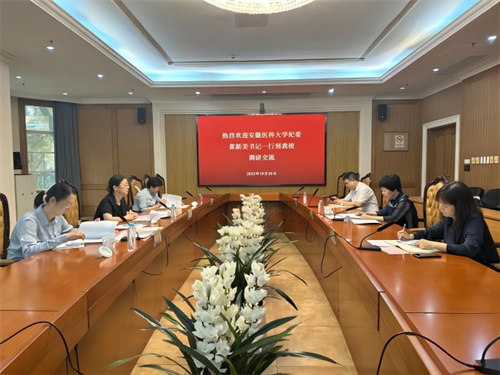 为学习借鉴国内同类医学院校工作经验做法,推进学校纪检监察工作高质量发展,10月25日、11月1日,校党委常委、纪委书记、省监委驻安徽医科大学监察专员黄新美带队,赴南方医科大学、山东第一医科大学开展工作调研。南方医科大学党委副书记 、纪委书记、省监委驻校监察专员吴育莲,山东第一医科大学党委委员、纪委书记、省监委驻校监察专员刘东平分别主持调研座谈会。