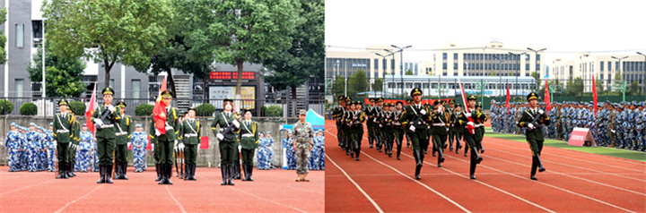 孙建成、周建华代表学校分别在高教基地校区、新桥校区向承训部队赠送锦旗,向为承担本次军训任务付出辛勤汗水的承训部队领导、教官们表示崇高敬意和衷心感谢。