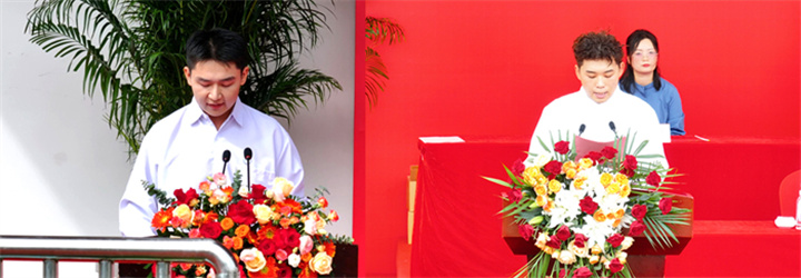 发言环节中,老生代表分享了在校成长的感悟。来自智能制造学院2024级机械设计及其自动化专业刘飞翔同学、金融学院2024级大数据管理与应用专业胡显亮同学,讲述了在合经校园的收获与感动,表达了对学校的感恩之情,并鼓励学弟学妹珍惜大学时光,勤学笃行、勇于探索,在校园中书写无悔青春。