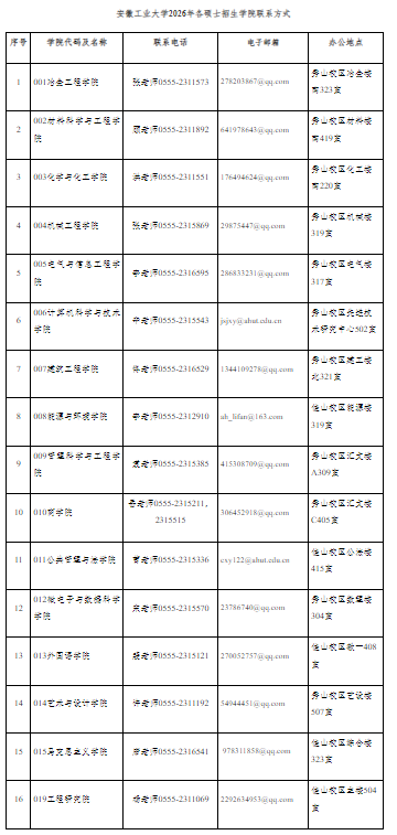 通信地址:安徽省马鞍山市花山区湖东北路400号安徽工业大学(佳山校区)研招办