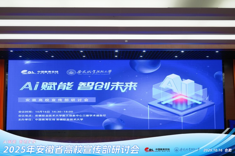 10月16日下午,由中国教育在线与安徽职业技术大学联合主办的“AI 赋能・智创未来”安徽高校宣传工作研讨会在安徽职业技术大学召开。中国科学技术大学、合肥工业大学、安徽医科大学、安徽理工大学等近50所高校宣传工作相关负责人以及安徽职业技术大学党委理论学习中心组成员、中层干部、辅导员共计400余人参会。会议围绕融媒体与智能时代高校宣传工作创新路径深入研讨,为安徽高校宣传思想文化工作高质量发展凝聚智慧。安徽职业技术大学校领导杨林国主持会议。