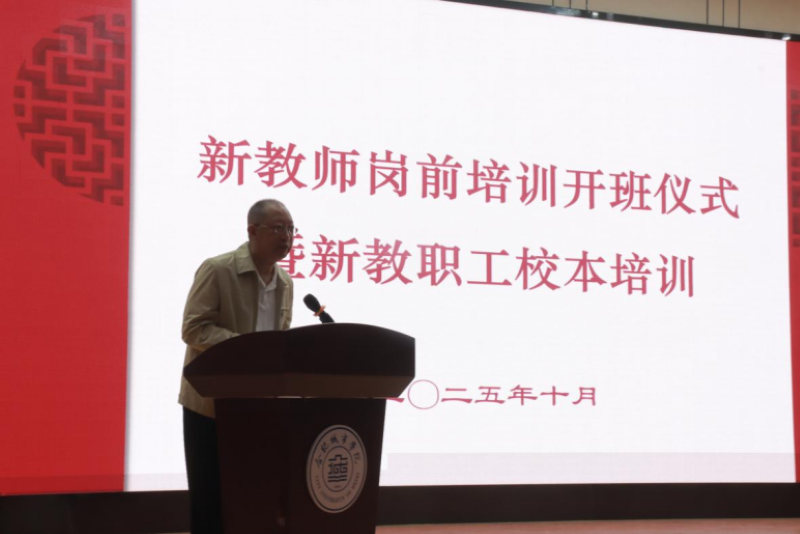 为进一步提升教师队伍的专业素养、教学能力与思想觉悟,明确学校发展方向,助力教师更好地适应教育教学工作需求,10月16日-17日下午,合肥城市学院2025年新教职工岗前培训暨校本培训(第九期)在图书馆二楼报告厅顺利举行,60余名新教职工参训。学校领导林瀚、成祖德、祝家贵、李义宝、田园、杨彦友、宇晓锋、何旵升及各单位党政负责人出席培训开班式,校长祝家贵主持开班式。