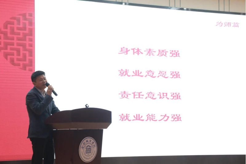 随后,董事长林瀚从多维视角为新教职工搭建成长指引框架。他首先回顾了学校沐雨栉风、持续奋进的发展脉络。还描绘了学校办学蓝图,激励新教师汲取前行力量,坚定教育目标。同时围绕校徽校训、铜勋舰精神、三扶志愿者精神、教师誓词、幸福校园等七大维度诠释学校文化、人文情怀与价值取向。他希望,各位新教师在今后的工作中能够了解、认同、接纳进而内化为行为准则,实现个人成长与学校发展的双向奔赴,共创未来。他从“师道尊严”“敬天爱人”“止于至善”三个维度解读教师的职业内涵,并强调“与时俱进”的重要性,这四位一体共同构成新时代教师的完整成长图景。他要求新教师既要守护传统师道根基,又要开拓未来教育视野,立足讲台胸怀天下,深耕专业且保持开阔格局,以初心应对挑战,践行“四有”好老师标准,甘当无愧于“人类灵魂的工程师”。最后,他向全体新教师送上了事业有成、生活幸福的美好祝愿。