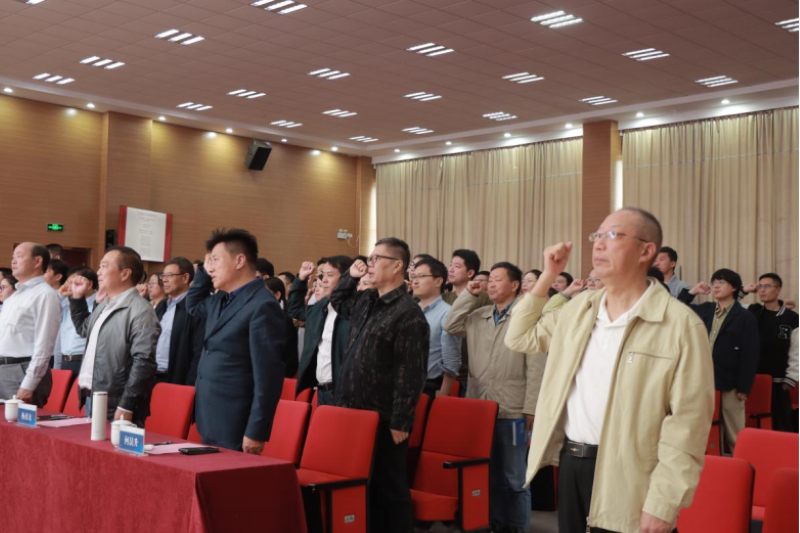在庄重的氛围中,人事处处长带领全体教师进行集体宣誓。誓言有声,育人无形。铿锵有力的承诺,不仅彰显了教师们坚守教育初心、恪守职业道德的坚定决心,也让大家更加明确了作为教育工作者的使命与担当,为后续的教育教学工作注入了强大的精神动力。