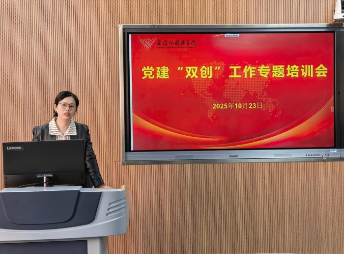 为深入贯彻落实新时代党的建设总要求,切实提升基层党组织党建“双创”工作水平,10月23日下午,安徽外国语学院党建“双创”工作专题培训于实训203室顺利开展。学校党委副书记童祖芬出席,组织部部长助理詹凤芝,各党总支、直属党支部组织委员及教工党支部书记参训。