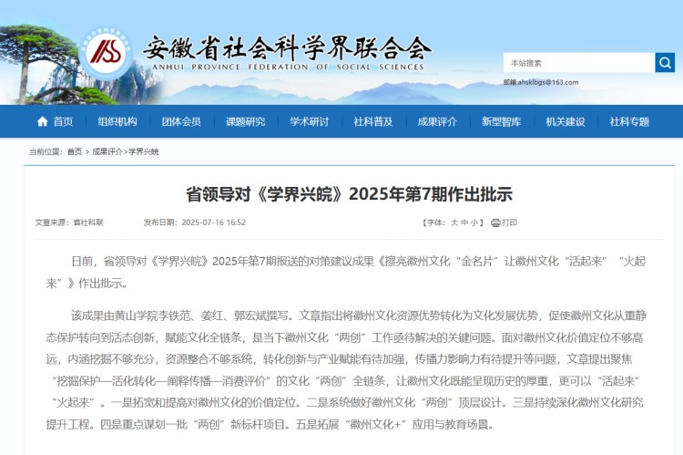 黄山学院智库始终以“成果落地、服务实效”为导向,在政策建言、产业赋能、文化传承等领域交出亮眼答卷,让“纸上成果”真正转化为地方发展的“实招硬招”。