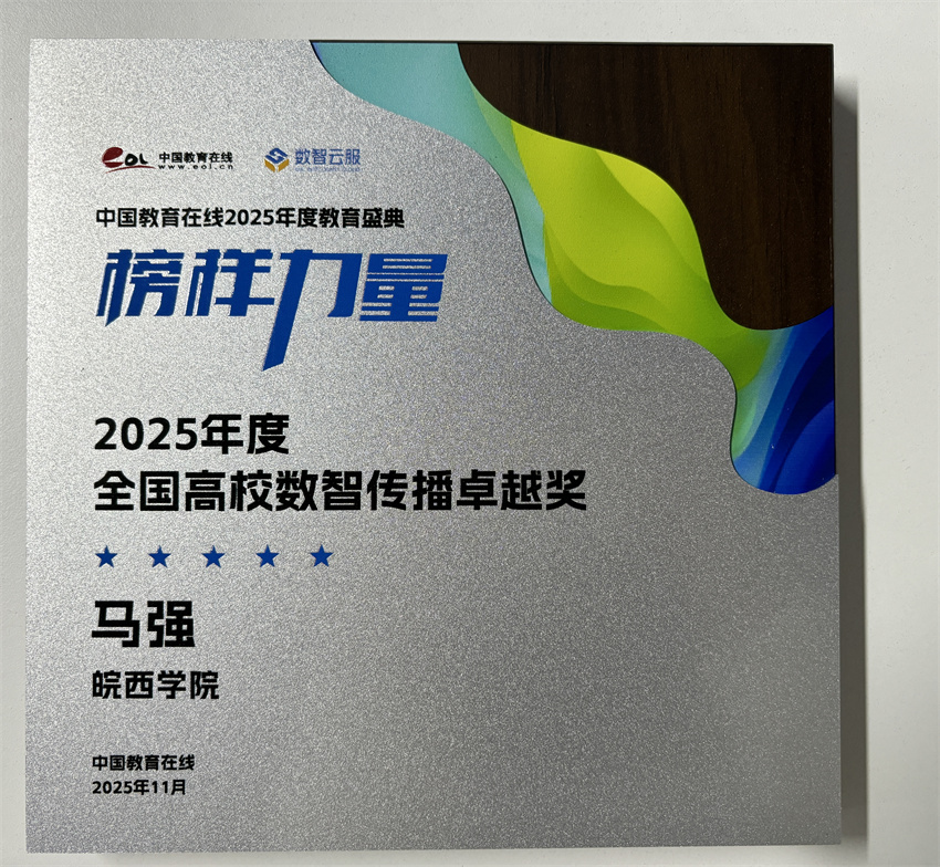 近日,中国教育在线“榜样力量·2025年度教育盛典”优秀案例名单公布。皖西学院马强老师凭借在新媒体领域的卓越成就与深远影响力,荣获“2025年度全国高校数智传播卓越奖”。