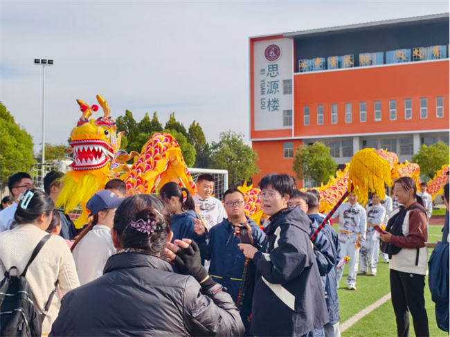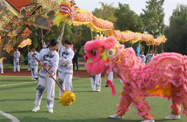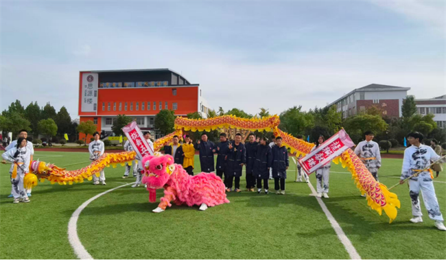 活动现场,激昂的鼓点骤然响起,瞬间点燃全场氛围。两只色彩鲜亮的舞狮率先登场,灵动的跳跃、憨态可掬的造型引得现场掌声不断;紧接着,金色双龙翻腾而出,时而盘旋舞动,时而昂首摆尾,精湛的表演牢牢吸引了全场目光,特教中心的孩子们纷纷瞪大双眼,脸上洋溢着惊喜的笑容。随后,学院双截棍协会成员身着统一服装,带来刚劲有力的传统棍术表演,利落的动作、整齐的节奏,让孩子们忍不住拍手欢呼,现场洋溢着欢乐温馨的氛围。