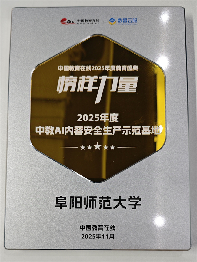 阜阳师范大学荣获“2025年度中教AI内容安全生产示范基地”