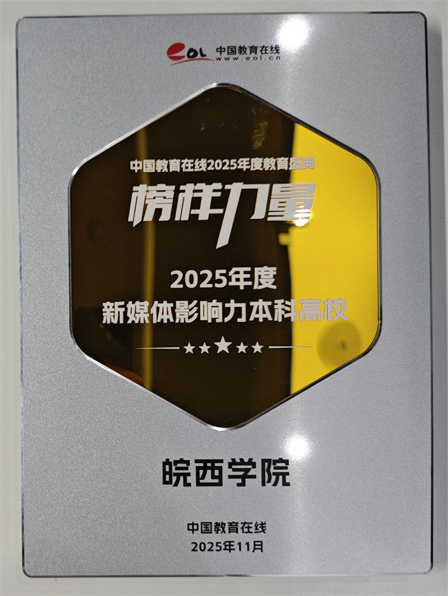 近日,中国教育在线“榜样力量·2025年度教育盛典”优秀案例名单公布。皖西学院凭借在新媒体领域的卓越成就与深远影响力,荣获 “2025年度新媒体影响力本科高校”。
