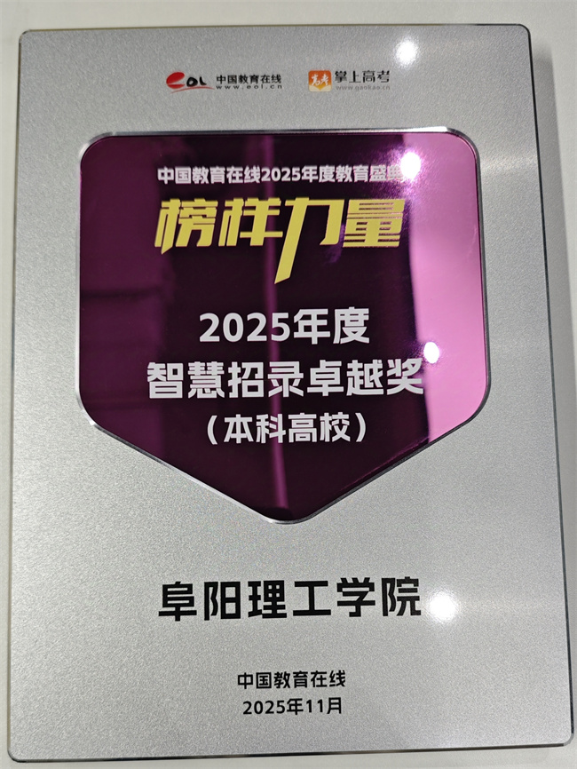 近日,中国教育在线“榜样力量·2025年度教育盛典”优秀案例名单公布。阜阳理工学院凭借在招录工作中对智慧招录相关技术工具的高水平运用及卓越成果,获评“2025年度智慧招录本科高校”。