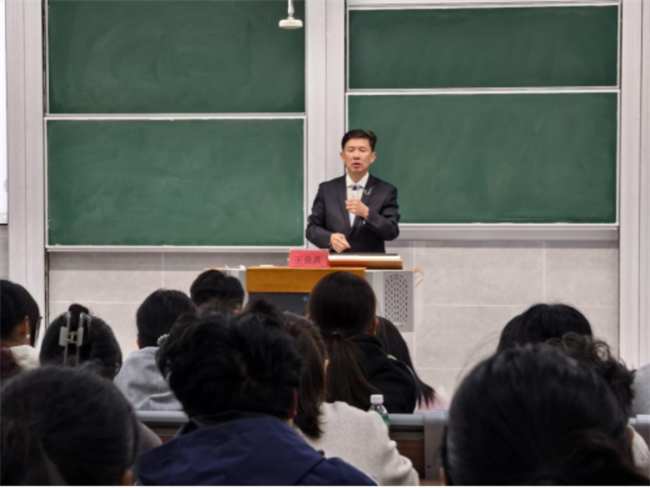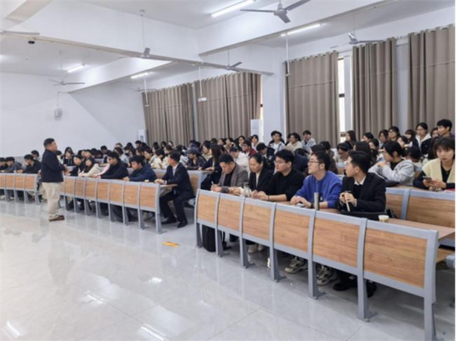 王良其从“依法治国”“法治思维”“律师思维”三个维度,以党的十八大、十九大、党的二十大精神为主线,全面阐述了“依法治国”的内涵与外延,并结合法律工作实际对“法治思维”进行阐释和宣讲,通过典型案例引导同学们用法治思维思考法律及社会问题,加深了师生们对法律工作的认识,进一步提升了同学们的法律素养。在互动环节中,同学们踊跃提问,从律师职业路径到公平正义维护等现实议题,现场问答积极,充满正能量。