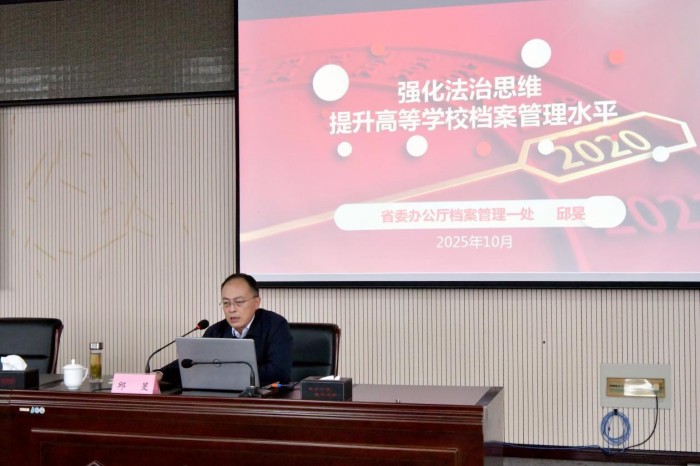 邱旻从档案工作的重要意义、新修订《中华人民共和国档案法》的核心要义、《中华人民共和国档案法实施条例》的主要内容、高校档案工作存在的突出问题与应对策略等四个方面,通过生动案例,深刻阐释了档案“存史、资政、育人”的独特价值,为宿州学院进一步提升档案工作管理水平提供了有力指导。
