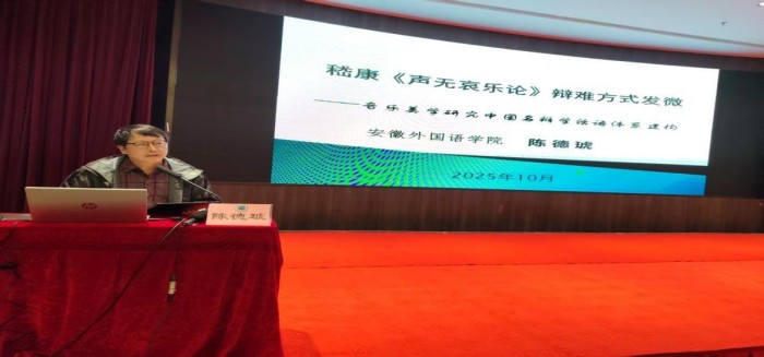安徽外国语学院教授陈德琥提交的论文《嵇康〈声无哀乐论〉辩难方式发微——音乐美学研究中国名辩学话语体系的建构》入编大会论文集,并作大会主题发言。