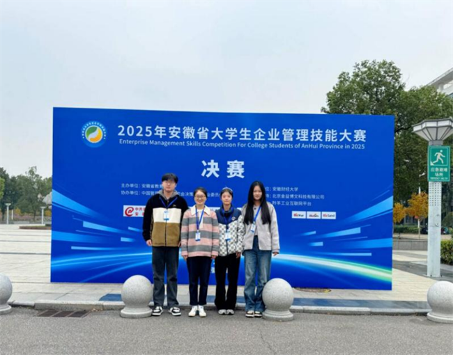 近日,2025年安徽省大学生企业管理技能大赛总决赛在安徽财经大学圆满落幕。张浦、程世瑞、张杏子组成的“叫什么好呢”代表队,历经校赛选拔、省级初赛的层层考验,从全省诸多队伍中脱颖而出跻身决赛,经过专业教师姚连玲、尚丽娟老师的精心指导,最终斩获省级二等奖,充分彰显了学校在应用型人才培养领域的扎实成效。