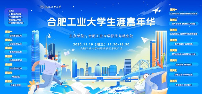 11月19日,合肥工业大学生涯嘉年华活动顺利举行,活动以趣味互动为抓手,将生涯规划引导融入多元体验场景,让学生在轻松参与中明晰自我定位、明确发展方向,助力生涯规划落地见效。