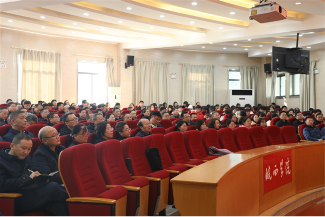 为进一步加强基层党组织建设,提升基层党组织书记政治素质与履职能力,充分发挥基层党组织战斗堡垒作用,11月19日下午,皖西学院2025年基层党组织书记培训班开班式在综合楼106报告厅举行。皖西学院党委书记、党校校长潘荣华出席开班式并作动员讲话,省委党校(安徽行政学院)一级巡视员袁维海教授作党的二十届四中全会精神专题辅导,开班式由皖西学院党委副书记胡林娜主持。全体处级干部和基层党组织书记培训班、大学生入党积极分子培训班、新发展党员培训班学员参会。