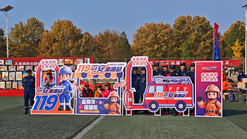 启动仪式后,开展了消防安全嘉年华活动,包括消防救援犬指挥搜救演示、粉尘爆炸与电气过载实验、模拟浓烟环境逃生体验、儿童消防漫画展、消防装备穿戴体验及安全知识有奖问答等。