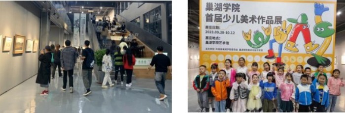 服务地方教育,助力美育普及。聚焦巢湖市基础教育需求,开展专题讲座、教学研讨、课程交流等精准服务。筹办首届巢湖学院少儿美术作品展,建立高校与中小学之间“手拉手”帮扶机制,助力巢湖市人民路小学举办校园艺术节,赴巢湖市特殊教育学校开展支教活动,让美育之光照进基层校园。