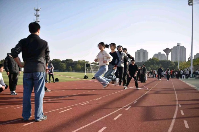 本届运动会得到各学院和分工会的大力支持,吸引了252位学生运动员、238名教职工运动员参与,参赛人数为历届之最。组委会在项目设置上特意选取具有广泛群众基础、易于推广的跳绳、毽球、蹴球、滚铁环、沙包掷准等富有民族特色的体育项目。在跳绳比赛区,选手们身轻如燕,他们争分夺秒,展现出惊人的速度和耐力。毽球场地上,彩色的毽子在空中划出一道道优美的弧线,精湛的技艺引得观众连连叫好。蹴球比赛中,选手们每一次精准的击打和巧妙的布局,都引来围观师生的阵阵赞叹。滚铁环项目既勾起了师生的童年回忆,也带给了大家全新的体验。沙包掷准区充满了悬念,选手们凝神屏息,瞄准不同分值的靶盘。手腕轻轻一抖,沙包在空中划出美丽的抛物线。