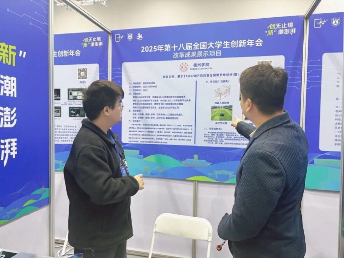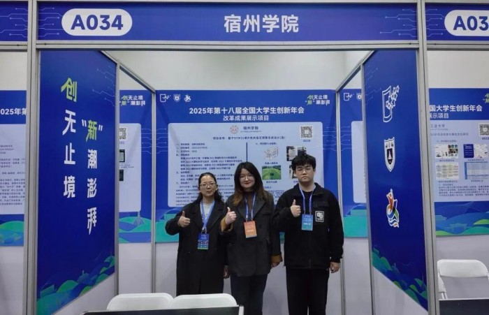 近日,以“创无止境‘新’潮澎湃”为主题的第十八届全国大学生创新年会在南京大学苏州校区举行。宿州学院信息工程学院、资源与土木工程学院教师沈书豪、巩舜妹联合指导、李靖担任负责人的项目《高空光缆巡检机器人》入选改革成果展示项目。宿州学院是安徽省本届年会中唯一入选的应用型本科高校,也是自2023年以来,宿州学院再次跻身这一全国最高水平的大学生创新创业盛会。