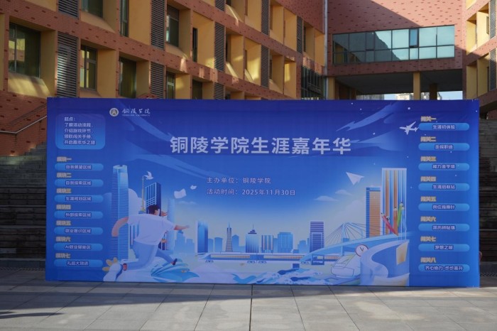 11月29日至30日,铜陵学院生涯嘉年华活动在翠湖校区“一站式”学生社区综合服务中心东广场成功举办。这场为期两天的大型户外体验活动面向全校学子,以创新闯关游戏为载体,引导在校大学生在亲身参与中解锁职业认知、探索自我潜能,进而科学搭建职业生涯发展框架。活动参与人数近4000人。