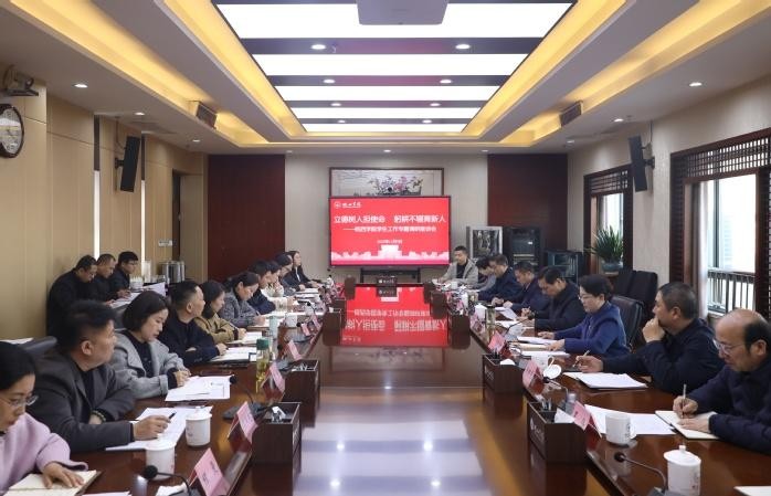 围绕进一步推动学生工作高质量发展,潘荣华提出四点要求:一要深刻认识新时代学生工作面临的新形势、新要求,不断增强责任感与使命感;二要坚持“以生为本”,准确把握当前学生工作的重点和关键,密切关注学生成长需求与发展动态,大力培育校园文化,筑牢校园安全稳定防线,着力提升育人实效;三要持续加强学工队伍建设,配齐建强工作力量,夯实工作纪律,不断提升学工队伍专业能力和业务素养;四要强化组织领导,狠抓工作落实,坚持全校“一盘棋”,推动各部门、各学院密切配合、协同发力,用心用情、精准智慧地做好学生工作。