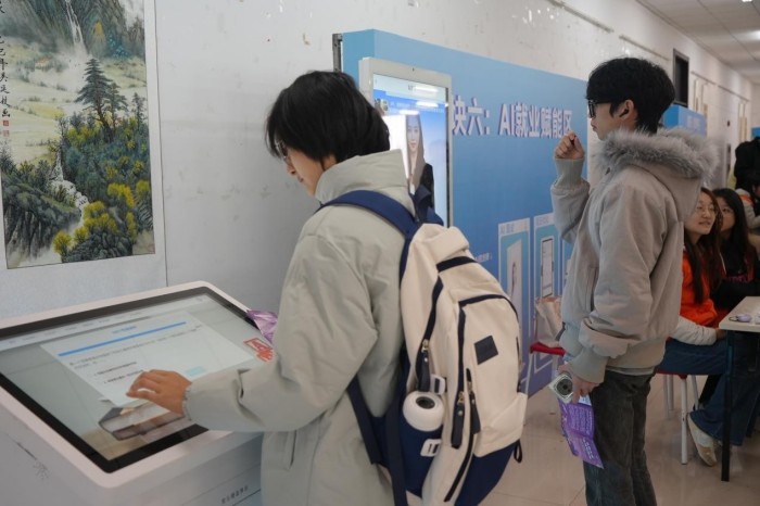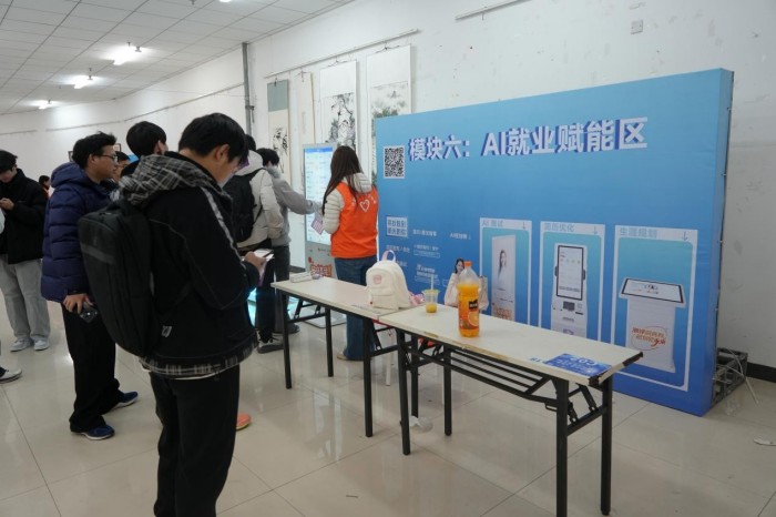 中国教育在线·就业桥作为承办单位策划并搭建本次活动,携多款智慧求职设备进驻现场,为3000余名学生带来沉浸式、互动式的职业探索与就业赋能体验,以实用化智能服务助力毕业生提升求职能力,成为现场一大特色。专区内配置了AI模拟面试机、AI简历一体机、AI生涯探索机等智能设备,形成了从求职准备到职业规划的基础服务链条。