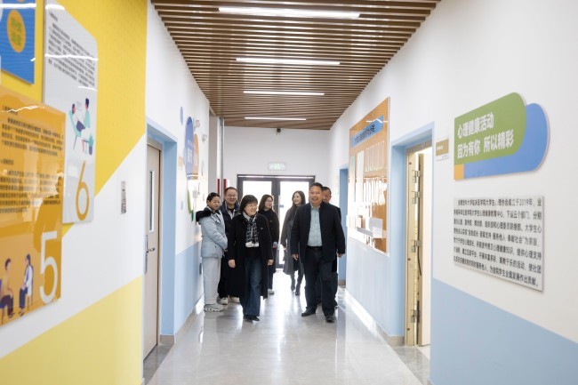 会前,与会人员实地参观了学院心理健康教育中心的个体咨询室、团体辅导室、情绪宣泄室、心理测评室等区域,详细了解各空间的设计理念与使用情况。参观过程中,双方就环境育心、空间赋能等话题进行了现场交流。