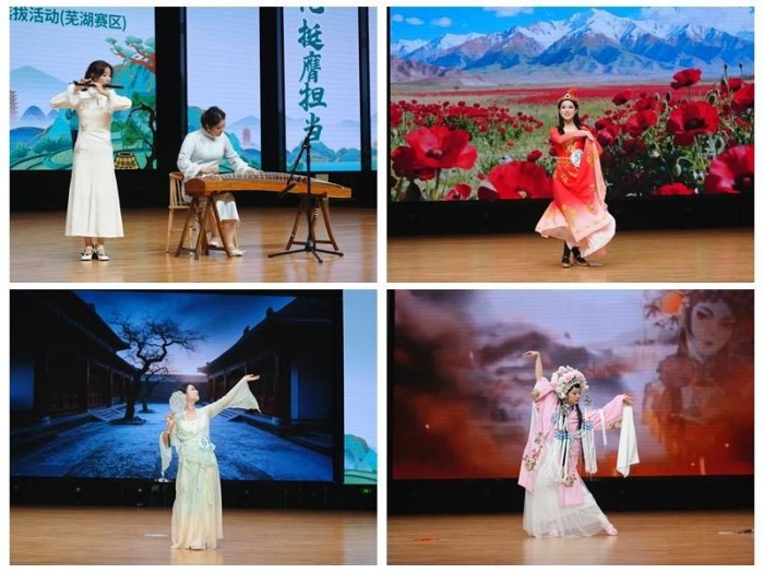 本次比赛以“讲好安徽故事,传播安徽声音”为核心主题,全面考察选手的综合素养与传播能力。活动现场气氛热烈,精彩环节接连上演:主题宣讲中,选手们以青春视角为切入点,将安徽的历史底蕴、山水风光与发展新貌娓娓道来,情感真挚动人;才艺展示环节更是百花齐放,舞蹈、朗诵、歌唱、武术、戏曲表演等多样形式轮番登场,选手们以个性化表达传递徽风皖韵,充分展现了青年一代对家乡文化的深刻理解与热爱,赢得现场观众阵阵掌声。
