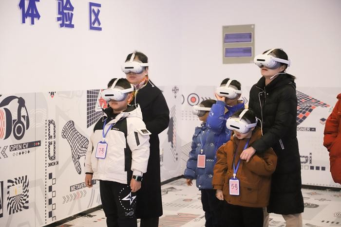 在VR实验室里,孩子们在家长陪同与教师、志愿者的引导下,佩戴专业设备走进奇妙的虚拟世界,沉浸式体验航天探索、历史穿越等丰富场景,仿佛置身浩瀚宇宙之中。逼真的视觉效果与趣味互动,引得孩子们阵阵惊叹与欢笑。此次体验不仅让孩子们直观感受前沿科技的独特魅力,更在孩子心中种下科学探索的种子,有效激发了孩子们探索宇宙、守护地球、探寻文明的浓厚兴趣与热情。