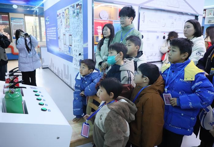 随后,孩子们与家长共同走进消防科技产教融合实践教育中心。安全管理处讲解员结合实物模型与模拟场景,通俗易懂地讲解火灾预防、逃生自救等安全知识。孩子们踊跃参与烟雾逃生模拟、沉浸式安全实训、灭火器实操演练、救生绳打结等互动体验环节,在亲手实践中掌握安全技能,切实提升自身安全防范意识与应急处置能力。