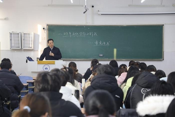 寒冬时节,皖西学院思政课堂内暖意融融、思潮涌动。2025年12月,学校领导班子成员率先垂范、走进课堂,围绕习近平文化思想、党的二十届四中全会精神等核心主题,面向不同专业学生开设系列专题思政课。通过“关键少数”带动“绝大多数”,学校着力推动党的创新理论、家国情怀与学科特色、学生成长深度融合,精心打造有思想、有温度、有力量的思政“金课”,为广大青年学子夯实信仰根基、筑牢思想堤坝。