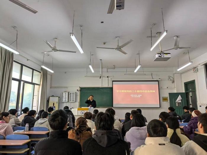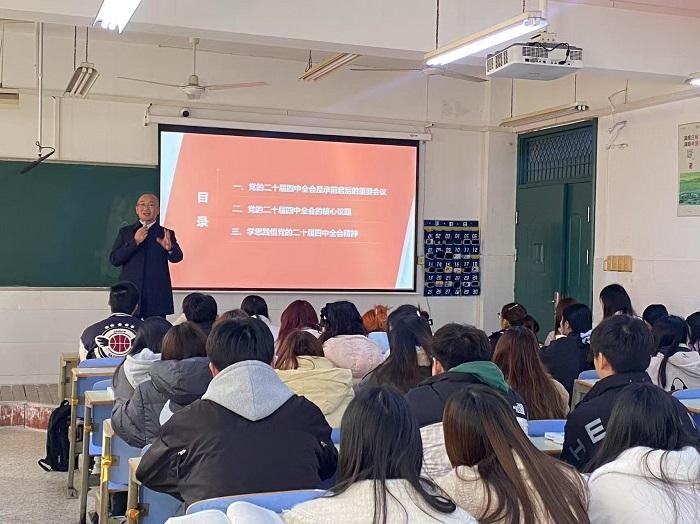 解读全会精神,明晰奋斗方向。12月5日,校党委副书记、院长肖新为电子商务专业学生解读党的二十届四中全会精神。课程以问题导学为切入点,通过丰富案例解析全会精神,强调学思用贯通、知信行统一,鼓励学生将专业学习与国家发展紧密结合,在实践中践行全会精神。