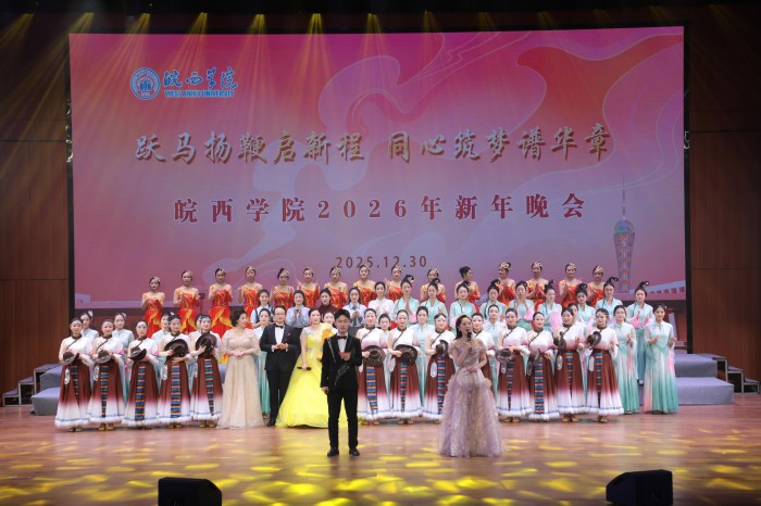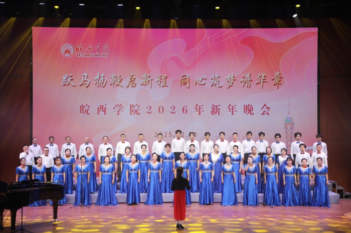 跃马扬鞭,共启新程;同心筑梦,齐谱华章!本场晚会以“启新程”“同筑梦”“谱华章”三大篇章、十六个精彩节目,震撼呈现了皖院人锐意进取的精神风貌与奔向未来的坚定信心。这不仅仅是一场视听盛宴,更是皖西学院在“十五五”开局之年的冲锋号角,必将激励全体师生在新的一年里,以更加炽热的豪情、更加坚实的步伐,携手并肩,共同书写属于皖西学院的壮丽新篇!(文图/黄晶晶)