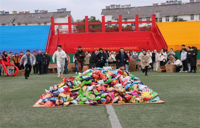 在轻松愉快的比赛环节结束后,活动温馨地开启了全员期待的“零食大作战”集体互动环节。现场教职工、裁判员和志愿者们欢聚一堂,共同投入到这场趣味互动中。大家全情参与,默契配合,将整场活动的热烈气氛推向高潮。