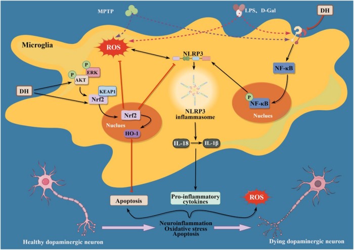 团队聚焦霍山石斛、铁皮石斛、金钗石斛等传统名贵药用植物,系统开展了其在神经保护、抗炎治肠、抗糖尿病等领域的药理机制研究。在帕金森病防治研究中,团队发现霍山石斛通过激活HO-1/Nrf2抗氧化通路、抑制NF-κB/NLRP3炎症通路的双重调控机制,显著减轻帕金森病模型小鼠的运动功能障碍和神经损伤,且生长年限越长的霍山石斛活性成分含量越高,药用效果越显著,为治疗帕金森病的天然药物研发提供了新靶点。