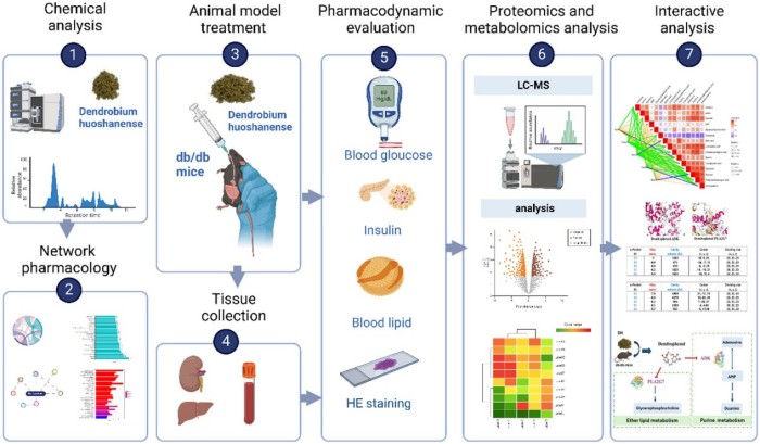 在抗糖尿病研究方面,团队通过多组学技术揭示了金钗石斛调节精氨酸/脯氨酸代谢、甘油磷脂代谢等通路,改善糖尿病小鼠血糖紊乱、胰岛素抵抗及肾损伤的分子机制。