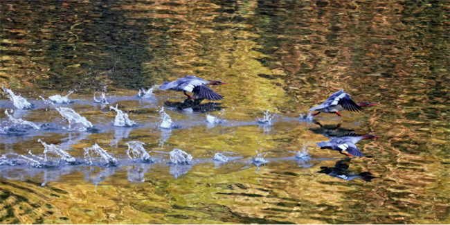 但失望过后,总有不期而遇的惊喜。调查组曾在一条河流苦寻6小时无果,连午饭都吃得忧心忡忡。就在大家以为要“空军”返程时,最后一个监测点的河面上,星星点点的白色身影闯入视野。“赶紧架起望远镜,越数越激动,整整21只!心都在颤抖。”更幸运的是,在一条从未记录过中华秋沙鸭踪迹的河流旁,队员们意外邂逅 17 只精灵,“它们太胆小,稍微靠近就会飞,我们小心翼翼停车、快速调试相机,生怕惊扰了这些贵客。”在全省同步调查中,当统计数据突破百只后,每新增一只都能引发团队的欢呼雀跃,这些瞬间,让所有艰辛都化为前行的力量。