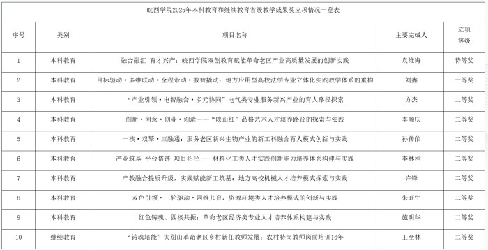 皖西学院在2025年安徽省教学成果奖评选中斩获佳绩