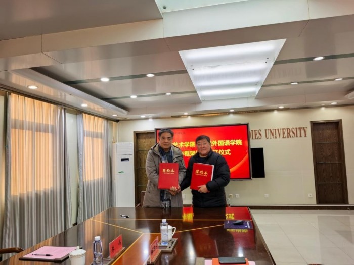 为深化校际协同育人,整合优质艺术教育资源,精准赋能音乐表演、舞蹈表演专业内涵建设,1月23日,安徽外国语学院与安徽艺术学院合作框架协议签约仪式在学校207会议室举行。学校党委副书记、校长周之虎,安徽艺术学院党委副书记、校长柳友荣出席仪式并致辞,学校常务副校长薛照明、两校相关职能部门及院系负责人共同见证签约。