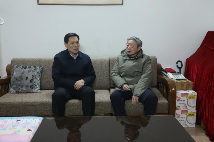 1月27日,校党委书记潘荣华一行首先来到学校原党委副书记、副院长陈有瑜家中。屋内暖意融融,笑语声声。潘荣华紧紧握住老同志的手,向他详细介绍学校近年来在学科建设、人才培养、科研创新等方面取得的丰硕成果与崭新气象,并代表学校党委对老同志为学校发展作出的重要贡献表示衷心感谢。