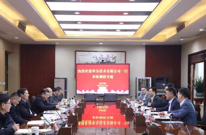 2月14日下午,华为技术有限公司副总裁、公共事业军团总裁李俊风一行到访皖西学院,就深化校企合作开展交流座谈。皖西学院党委书记潘荣华主持座谈会,党委委员、副院长符茂胜及相关职能部门、二级学院负责同志参加会议。