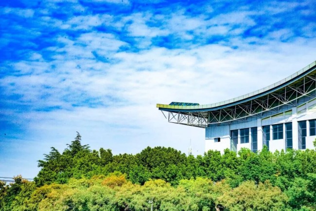 体育馆的飞檐指向远方。