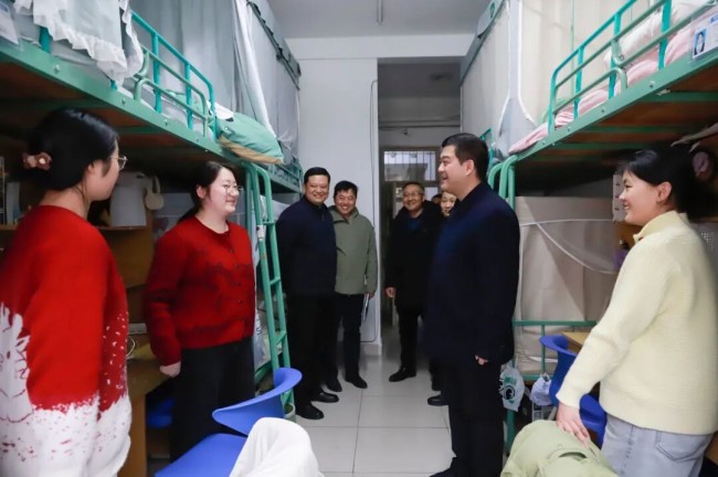 座谈会后,程曦来到三里桥校园相关实验室、水塔、食堂等地,实地检查实验室建设和安全管理、食品安全卫生以及食堂运营保障、在建工地及维修维护项目进展情况等。