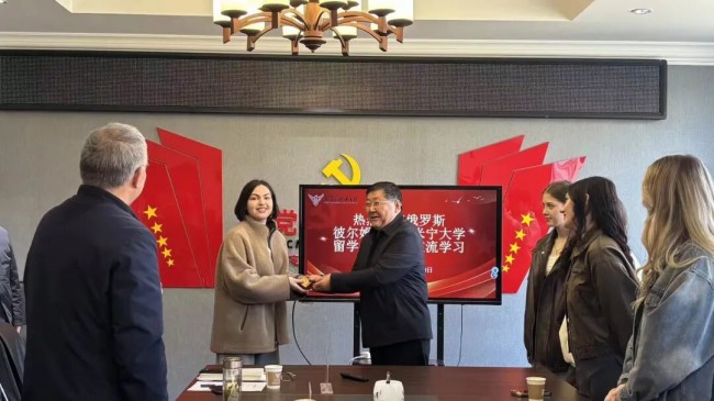 会上,安徽外国语学院校长周之虎为留学生颁发校徽。分管校领导在致辞中向27名俄罗斯留学生表示热烈欢迎。他介绍了学校“学兼中外、知行合一”的校训精神及在国际交流方面取得的成果。他指出,2024年首批彼尔姆大学留学生到校,今年又新增米宁大学留学生,留学生总人数创下新高。同学们的到来为校园增添了亮丽风景,也为“中俄教育年”写下了生动注脚。他寄语留学生勇敢面对文化差异与学业挑战,积极参与校园活动,在了解中国风土人情的过程中实现跨文化融合,同时要遵守中国法律法规与校纪校规,以文化使者的身份书写中俄青年共同学习、相互交流的美丽篇章。