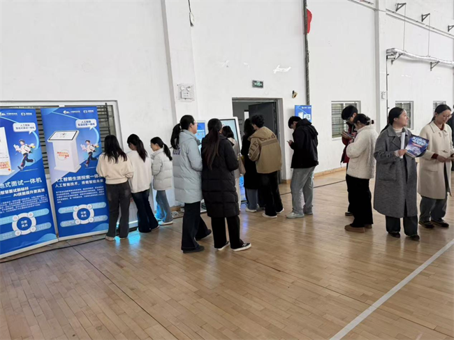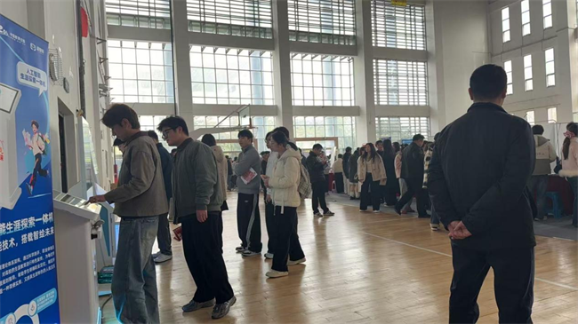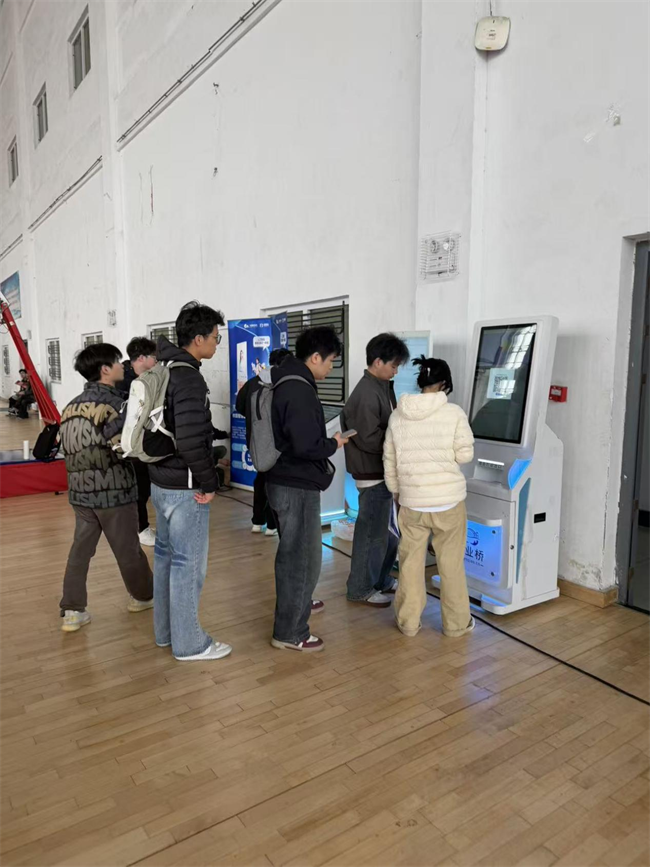 为提升毕业生求职效率、优化求职体验,合肥师范学院在双选会现场创新推出AI就业赋能区,配备简历、面试、生涯探索三台智能终端,为毕业生提供一站式智能求职服务:其中简历一体机可帮助学生完成简历的智能诊断、优化生成,完成后可现场快速打印规范精美的求职简历,还可同步预测目标岗位面试常见问题;面试一体机支持定制化模拟面试,还原真实面试场景,面试后生成分析报告助力学生复盘提升;生涯探索一体机则可提供个性化生涯测评与规划指导,帮助学生明确职业发展方向。