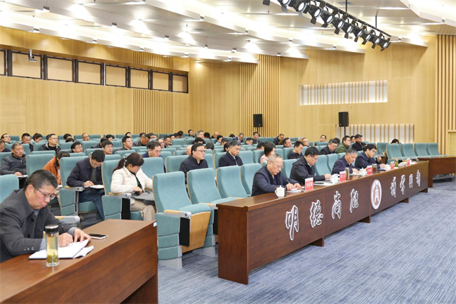 吴照明围绕“深入学习习近平总书记关于树立和践行正确政绩观的重要论述”主题作报告。报告中,他从正确政绩观的科学内涵、树立正确政绩观的重要意义、坚持为人民出政绩、坚持以实干出政绩、锻造正确政绩观等五个方面,既深刻阐释了树立和践行正确政绩观的历史背景、时代意义与理论渊源,又清晰指明了践行正确政绩观的核心要义、丰富内涵与实践品格,并结合学校实际,对如何在“十五五”新征程中树立和践行正确政绩观提出独到见解。