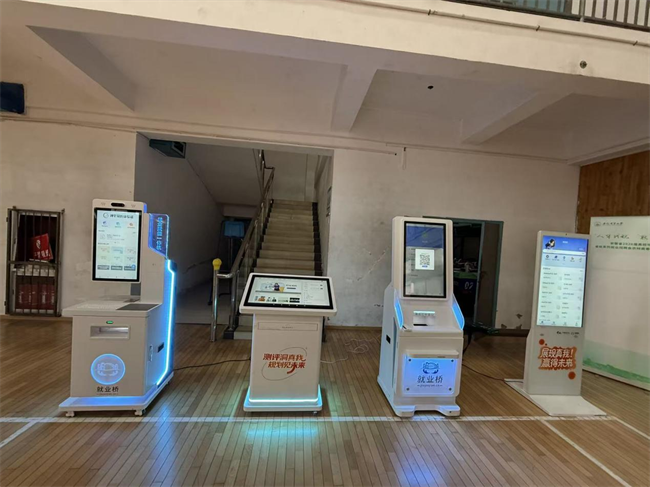 招聘会现场设置了征兵宣传、政策咨询等一站式暖心服务区,提供就业指导及政策咨询等服务。学校还在现场专门部署就业赋能、面试、简历、生涯探索四台AI智能就业服务终端,搭建一站式智能化求职服务区,为毕业生求职高效赋能:简历一体机可开展简历智能诊断、优化生成,还能根据简历内容预测目标岗位的面试问题;面试一体机支持定制化模拟面试,高度还原真实求职场景,配套专业分析报告助力学生复盘总结、提升面试能力;生涯探索终端可提供个性化生涯测评与规划指导,帮助学生明确职业发展路径;就业赋能一体机全流程覆盖就业服务核心环节,以智能化、个性化服务为抓手,整合简历优化、模拟面试、生涯规划等实用功能,助力广大学子精准对接岗位、决胜求职赛道。还特别邀请VIVO公司和合肥新桥机场集团,现场提供证件照拍摄和乘机出行相关咨询服务。